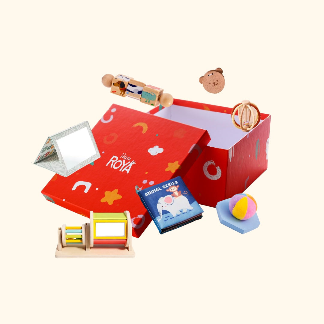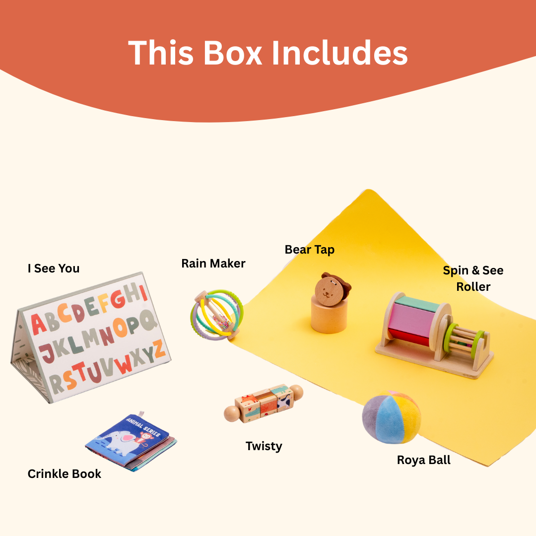 This wooden roller invites babies to reach, push, and track. It encourages whole-body movement during tummy time, while the spinning parts and mirror reward curiosity with motion — introducing cause-and-effect in a dynamic, age-appropriate way.